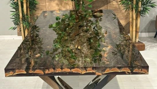 Beautiful Epoxy Tree Bark And Moss Resin Dining Table Coffee Table Console Table Living Room Table Kitchen Table Center Table Patio Table EndSide Table Home Décor BMD-87